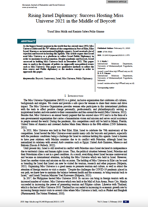 Rising Israel Diplomacy: Success Hosting Miss Universe 2021 in the Middle of Boycott