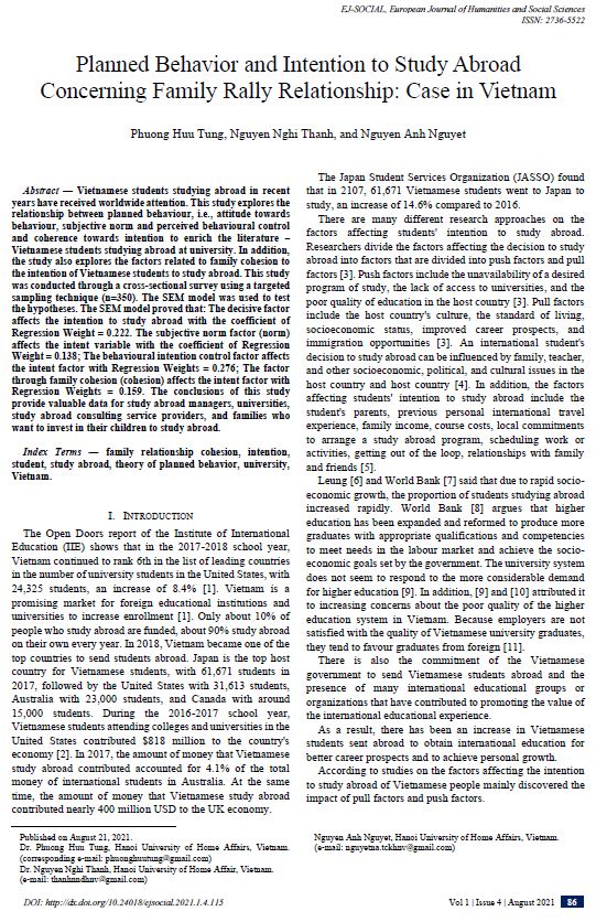 Planned Behavior and Intention to Study Abroad Concerning Family Rally Relationship: Case in Vietnam