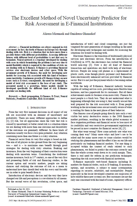 The Excellent Method of Novel Uncertainty Predictor for Risk Assessment in E-Financial Institutions