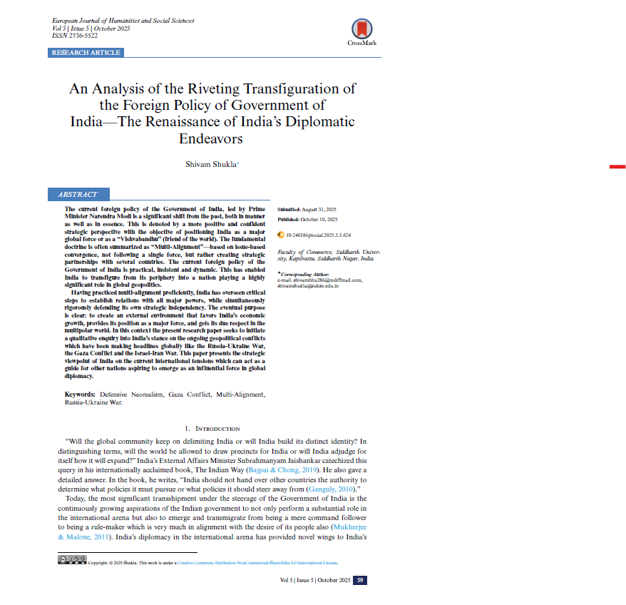 An Analysis of the Riveting Transfiguration of the Foreign Policy of Government of India—The Renaissance of India’s Diplomatic Endeavors