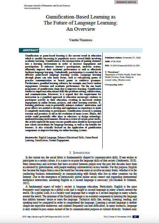 Gamification-Based Learning as The Future of Language Learning: An Overview
