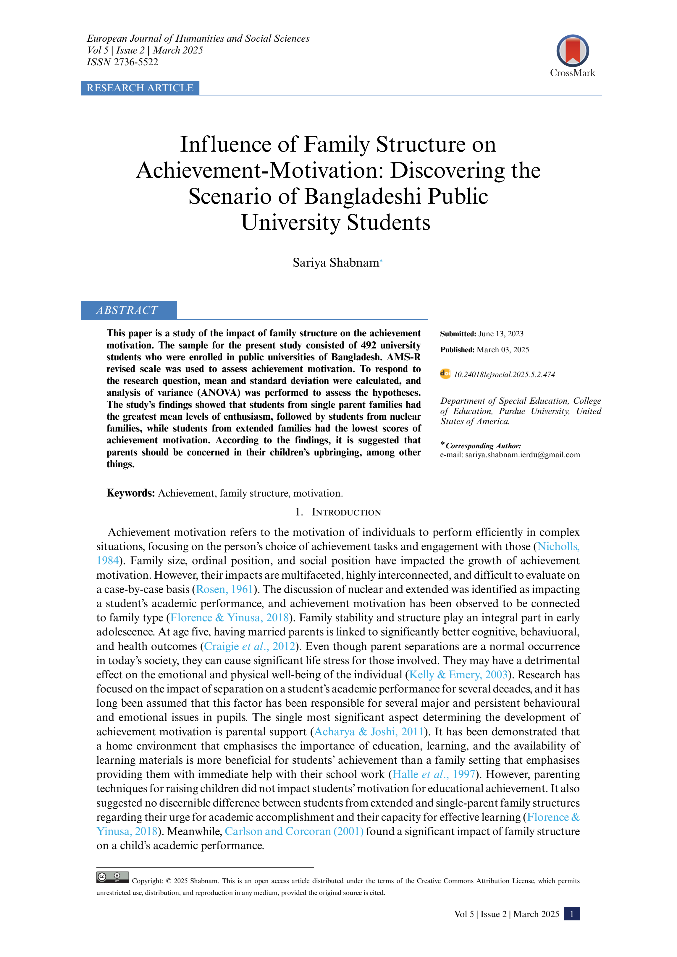 Influence of Family Structure on Achievement-Motivation: Discovering the Scenario of Bangladeshi Public University Students