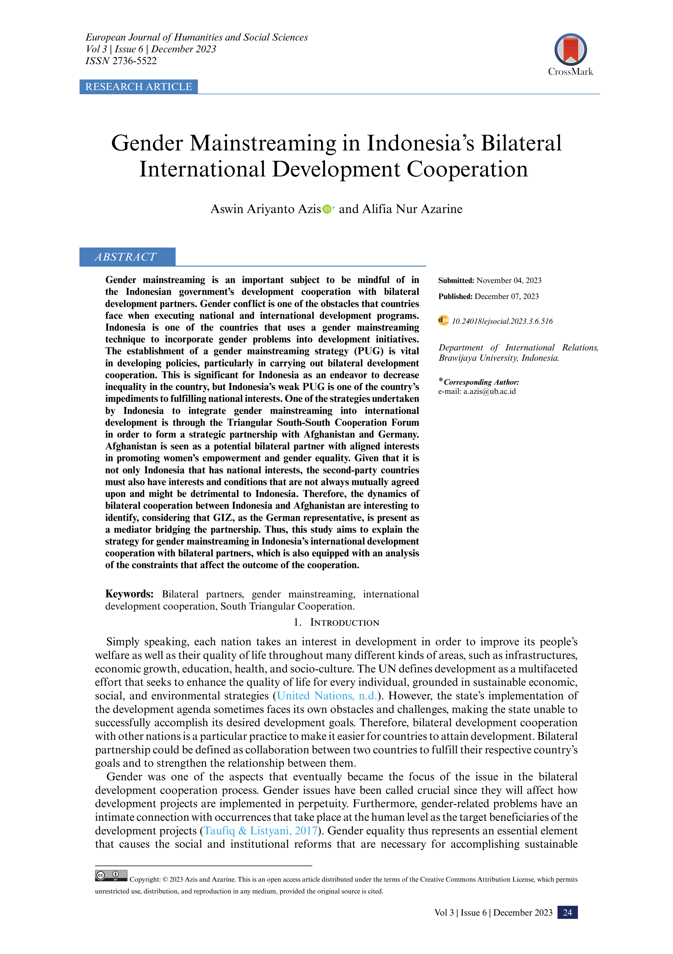 Gender Mainstreaming in Indonesia’s Bilateral International Development Cooperation