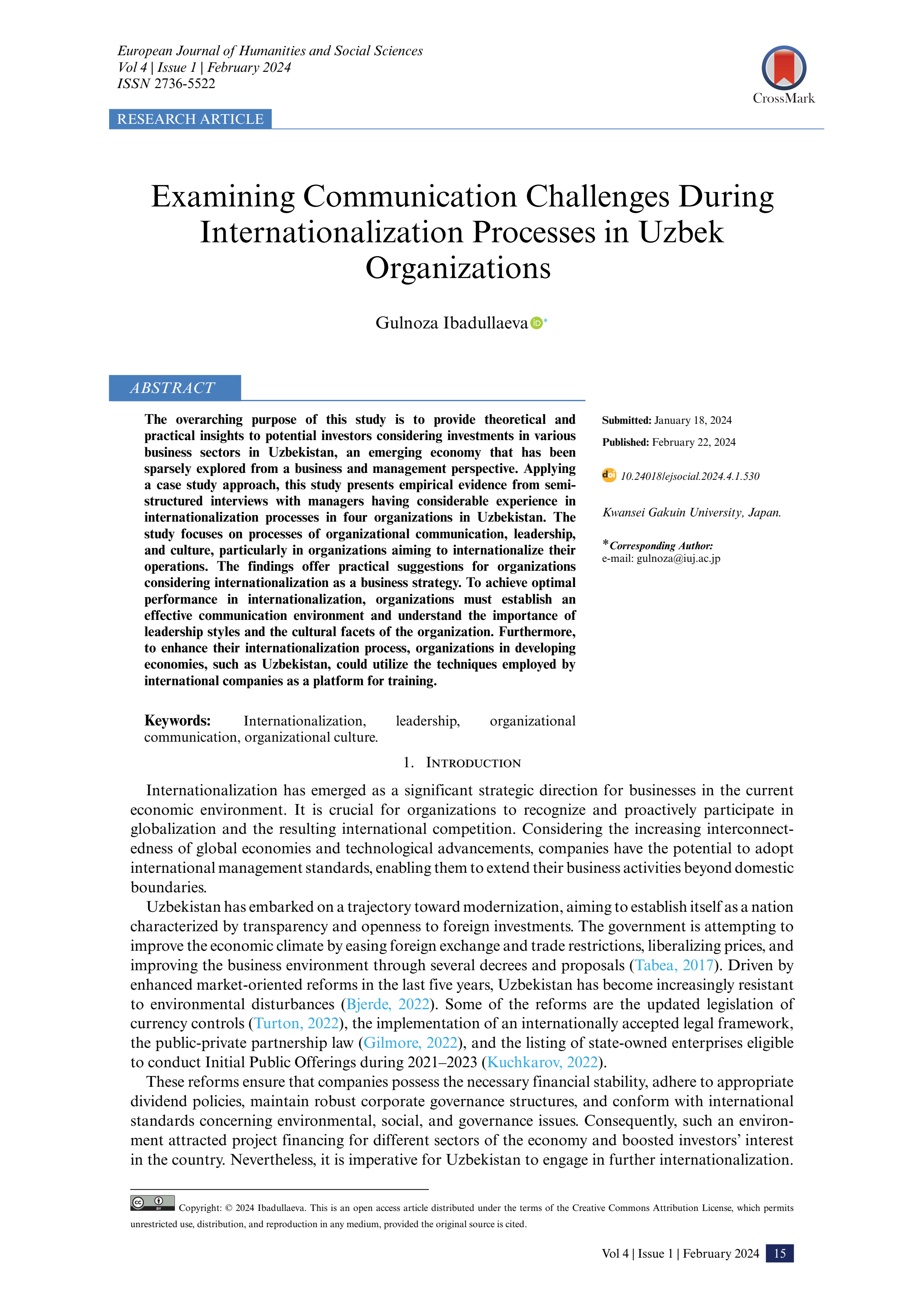 Examining Communication Challenges During Internationalization Processes in Uzbek Organizations