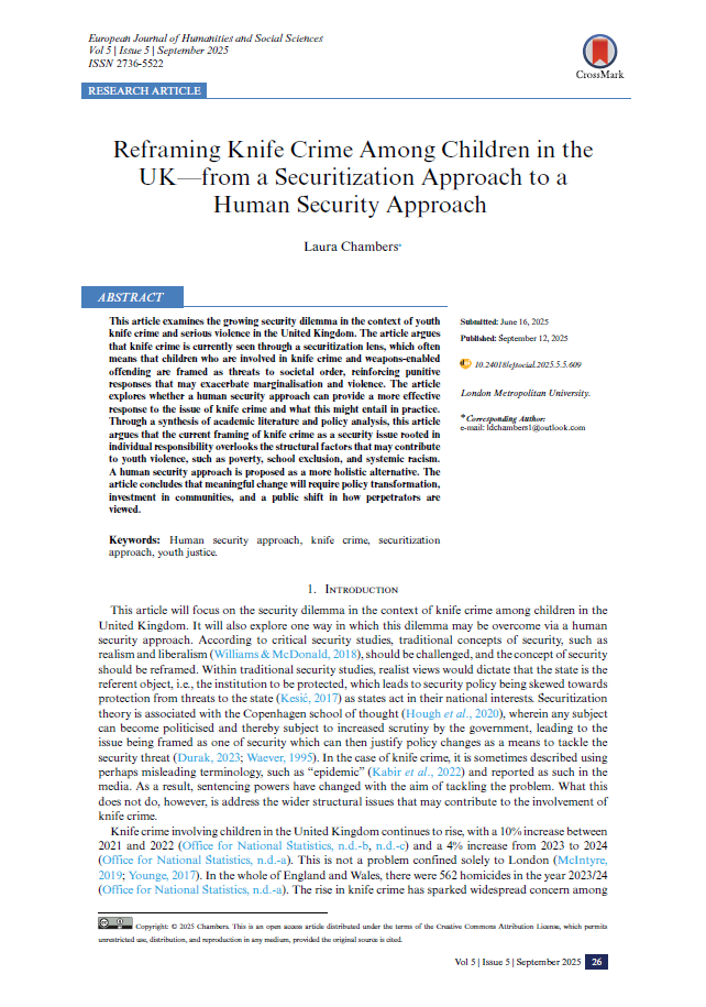 Reframing Knife Crime Among Children in the UK—from a Securitization Approach to a Human Security Approach
