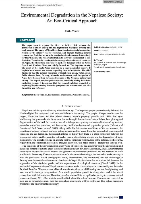 Environmental Degradation in the Nepalese Society: An Eco-Critical Approach