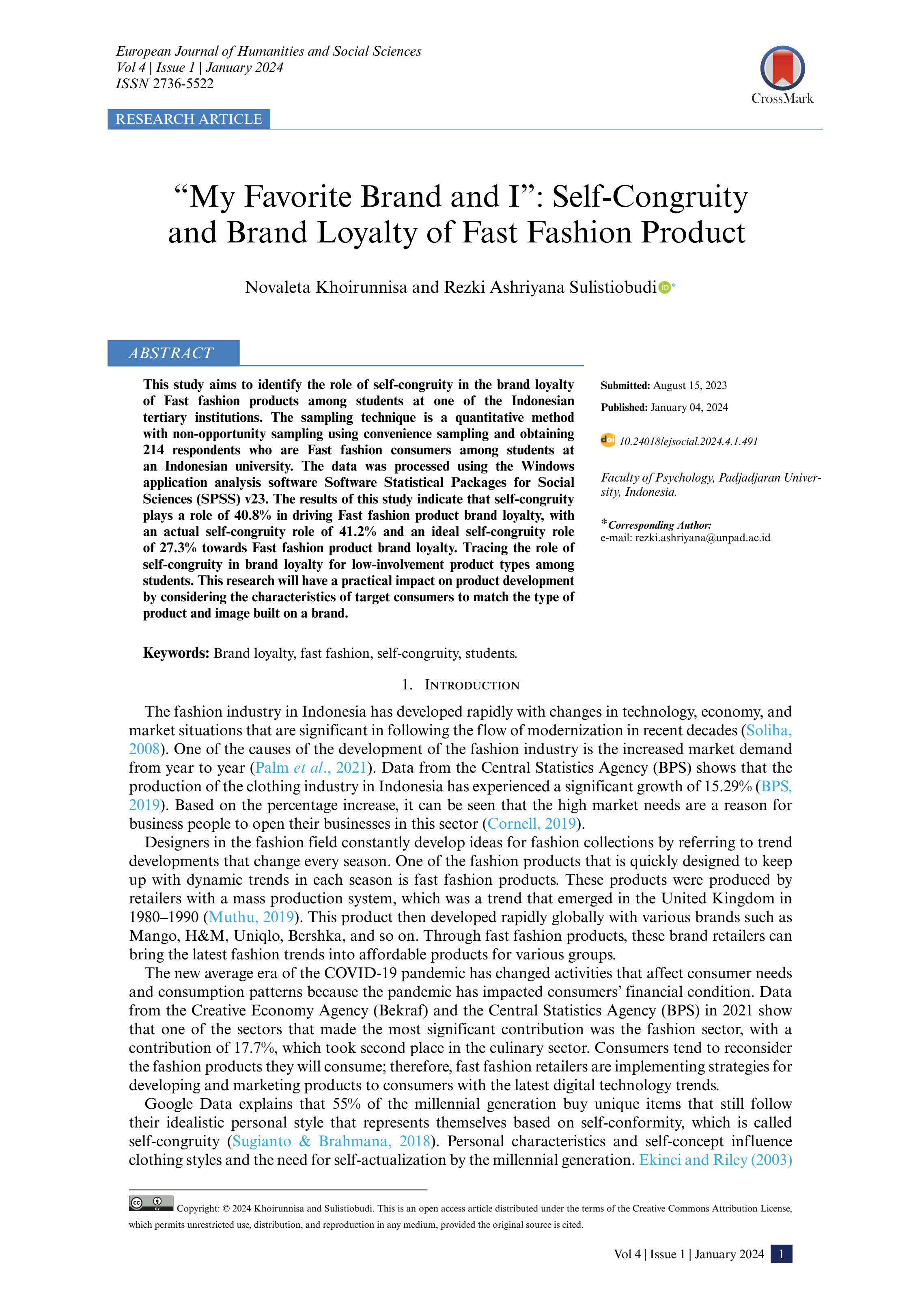 “My Favorite Brand and I”: Self-Congruity and Brand Loyalty of Fast Fashion Product