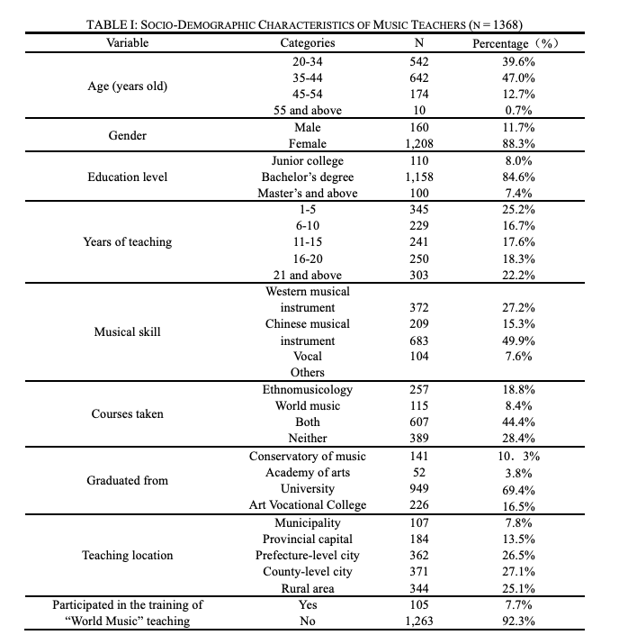 Demographic Factors Influencing Music Teachers’ Attitudes Toward World Music Teaching in China