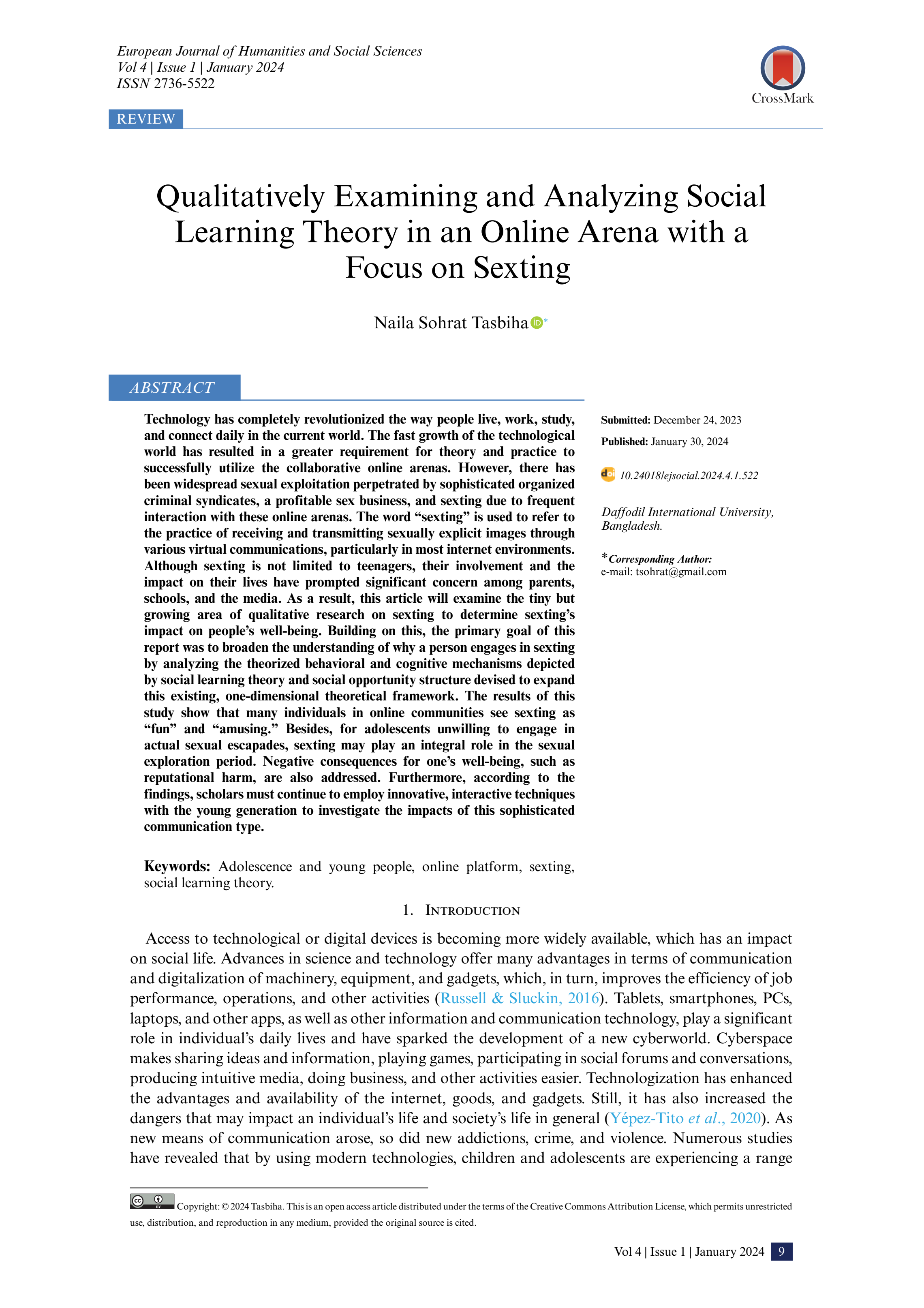 Qualitatively Examining and Analyzing Social Learning Theory in an Online Arena with a Focus on Sexting