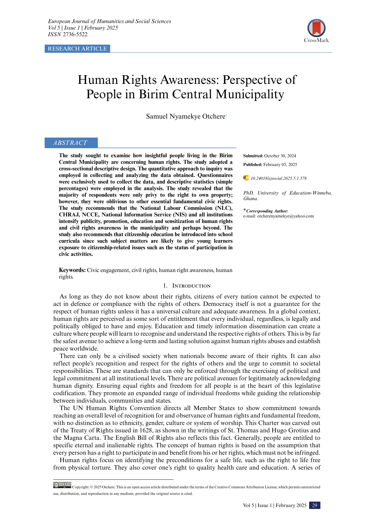 Human Rights Awareness: Perspective of People in Birim Central Municipality