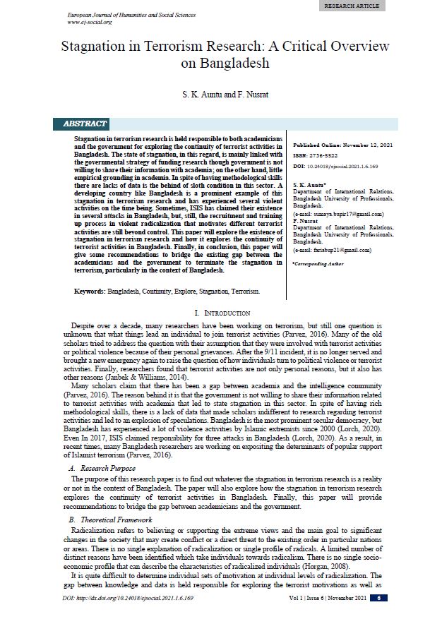 Stagnation in Terrorism Research: A Critical Overview on Bangladesh