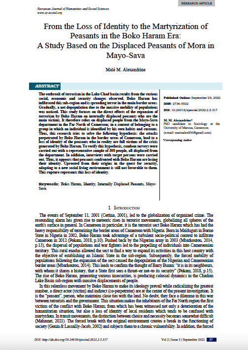 From the Loss of Identity to the Martyrization of Peasants in the Boko Haram Era: A Study Based on the Displaced Peasants of Mora in Mayo-Sava