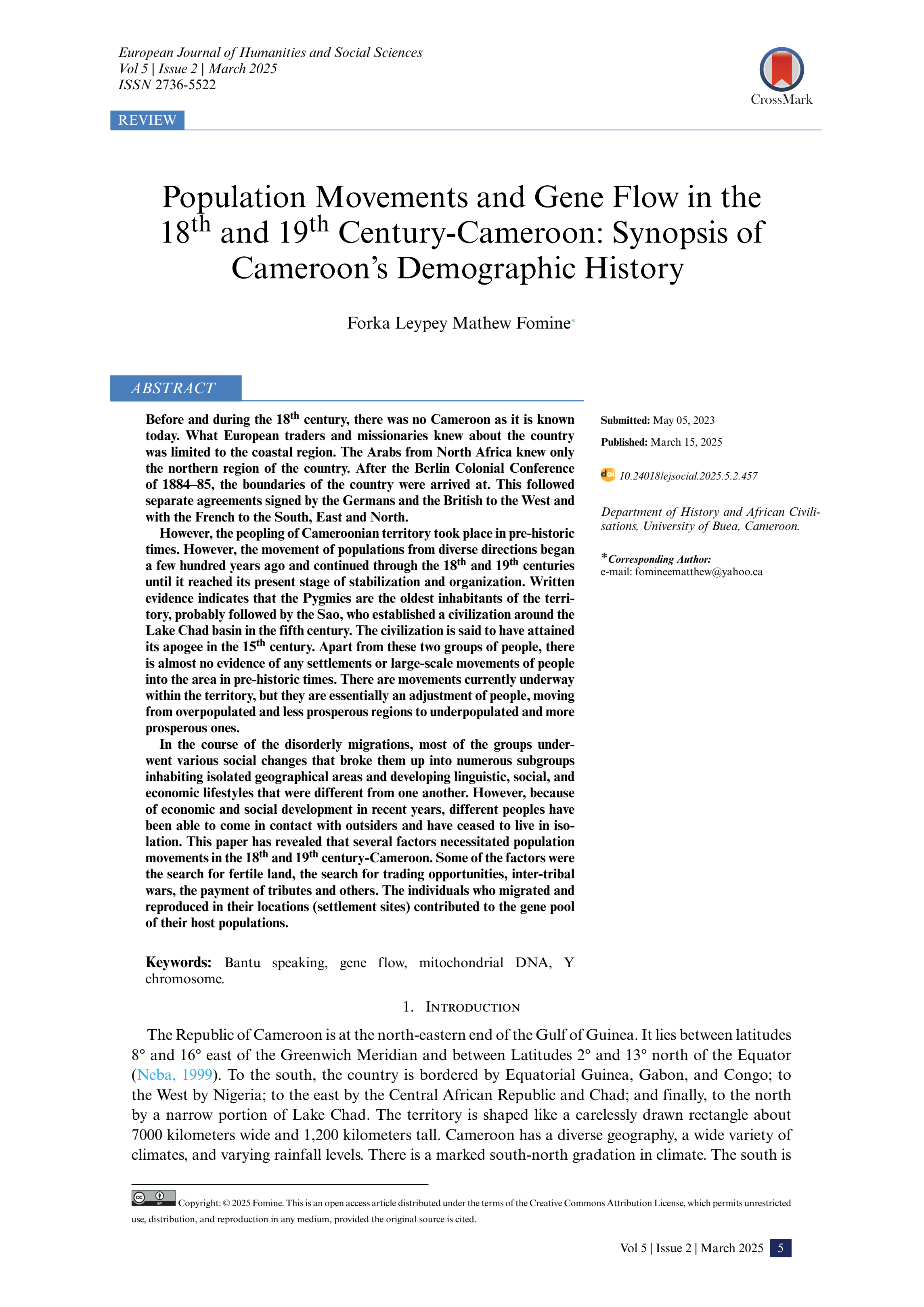 Population Movements and Gene Flow in the 18th and 19th Century-Cameroon: Synopsis of Cameroon’s Demographic History